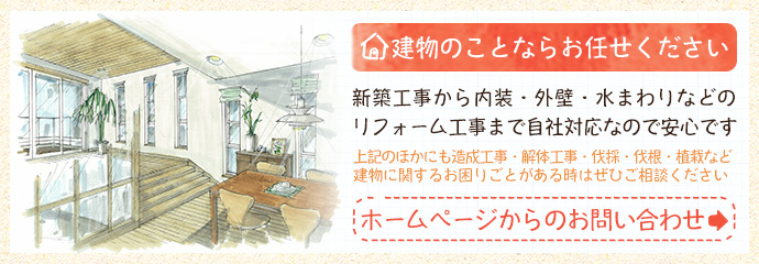 弊社は、業歴42年の代表が設立した会社で、神奈川県全域の建築事業に携わっております。リフォーム工事を中心に、新築工事や外構エクステリア工事など、一般住宅やマンション・アパートに関わることなら何でも対応いたします。個人のお客さまからハウスメーカーさま・不動産会社さままで、お気軽にご相談ください。造成工事・解体工事・伐採・伐根・植栽も行なっております。